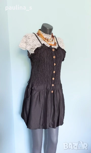 3️⃣. Колаж / XL / 3XL - "Chelsey". Цената е крайна 39,99лв / 20 евро. Дизайнерски сукман с ластичен корсет. Материята е памук с примеси и има транслуцентен ефект. Декорациите са копчетата и памучна дантела на корсета, презрамките се регулират по дължина. Може да се носи и като туника върху клин или панталон. Джобовете са коси и обемни, талията е ниска, полата е Балерина, има хастар. Има романтичен и секси аутлук. Изумителна дреха. За ценителки!