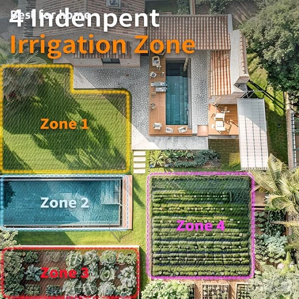 4 изхода и 24 индивидуални програми: Различните части от вашия двор изискват ли различни изисквания за поливане? Нашият WiFi таймер за напояване с 4 зони предлага общо 24 независими програми за поливане. Можете да програмирате всеки клапан поотделно с до 6 различни графика за поливане, което ви позволява да персонализирате подходящ план за поливане за всяка зона от вашия имот, без да засягате останалите зони.