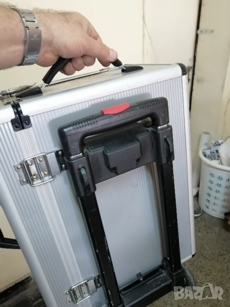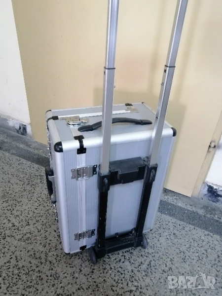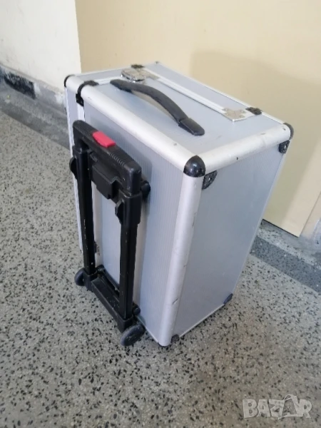 Алуминиев куфар за техника или инструменти, с колела и транспортна количка.
