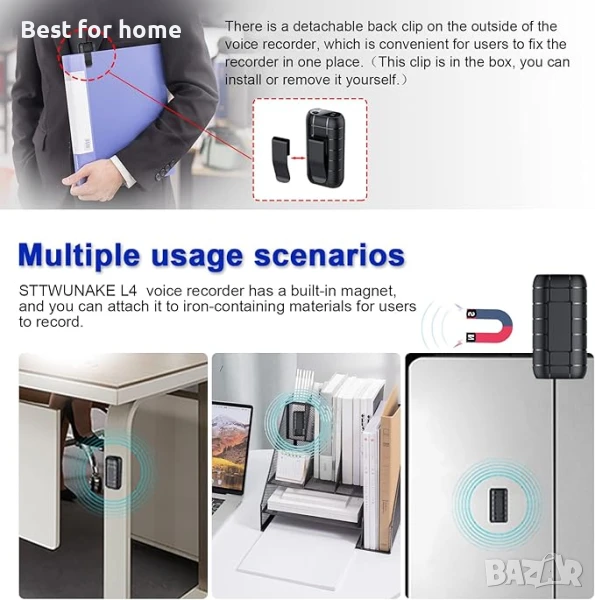 【Вграден магнит】Рекордерът има вграден магнит, който може да се адсорбира върху магнитен метал за лесна употреба.
