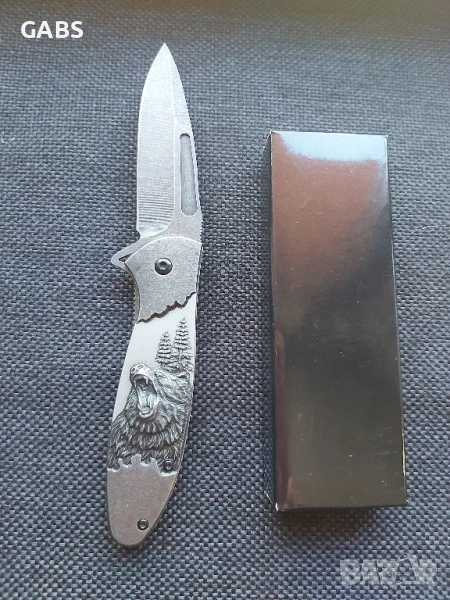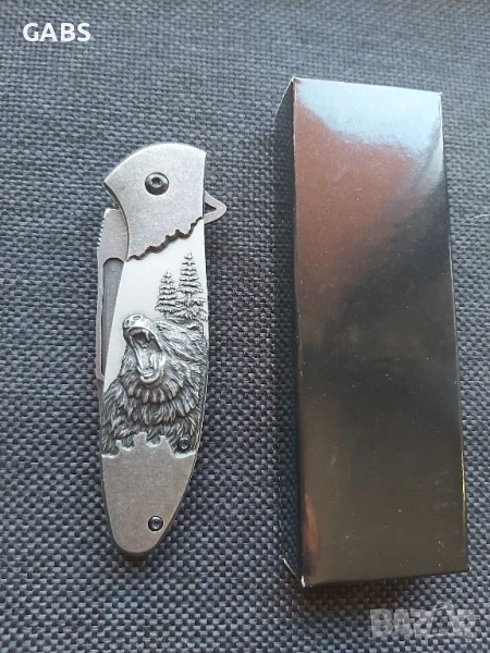 Джобен сгъваем нож с гравирана дръжка мечка,2958
