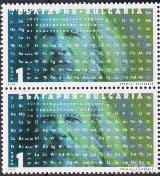 1. Чиста марка Tаблица на химичните елементи 2019 от България. Тираж 5500. цена 3.00 лева (сн. 1)