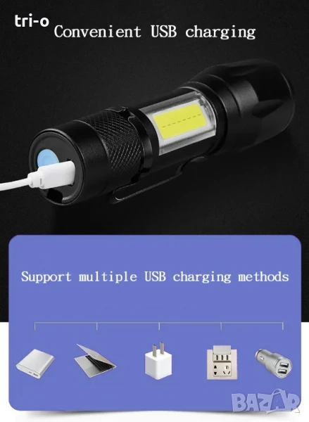 Мини LED преносимо фенерче с USB зареждане, мащабируема фокусна светлина → Обява 50674148