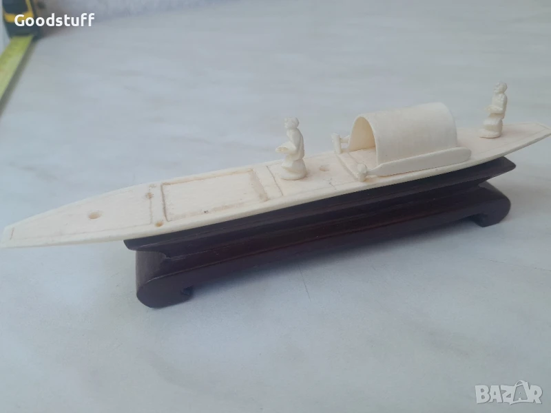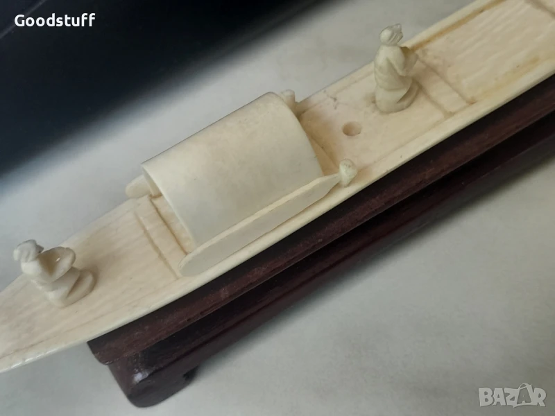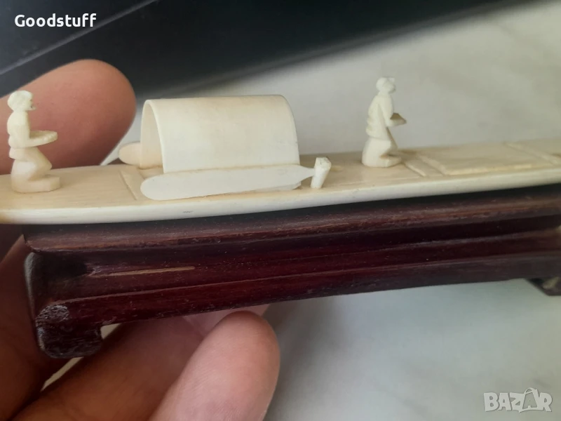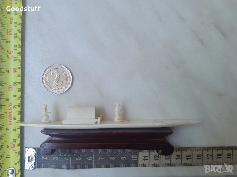 Рядка стара фигурка, слонова кост ,лодка,шхуна,кораб, Инуити → Обява 50674958