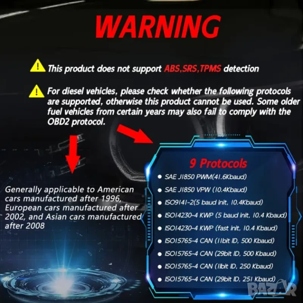 Последна версия на OBD2 диагностичния скенер V420 за 2025 г. предлага пълни функции на OBDII, режими 6/8, четене на кодове на двигателя, актуални данни, тестване на напрежението на батерията и възможности за ресет, съвместим с всички OBDII/EOBD превозни средства, произведени след1996 г.