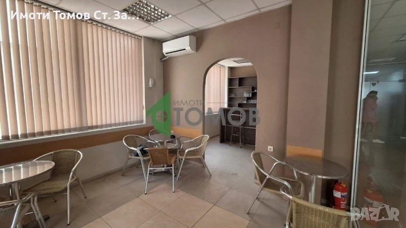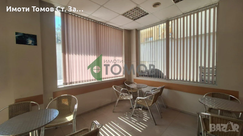 Имоти Томов Стара Загора представя на Вашето внимание кафе аперитив с площ от 37 кв.м. в центъра на града. Заведението е оборудвано с маси със столове и удобен бар плот. Има възможност да се поставят маси и чадъри на открито.