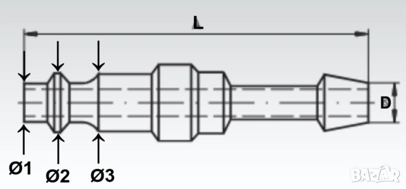 Модул (евростандарт / DIN): Ø1(чело)=10мм; Ø2 / Ø3=12мм (вижте схема и снимки);