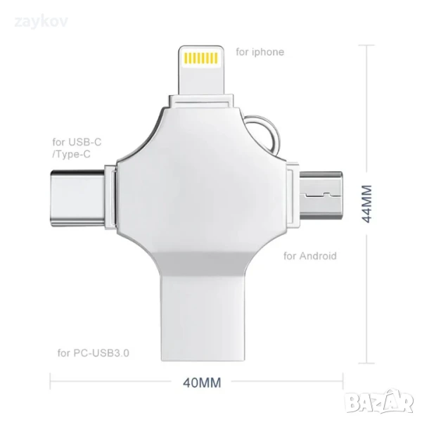 4 в 1 USB памет, 128GB, USB, Type-C, MicroUSB, iPhone, 3.0, Съвместима с всяко устройство, снимка 1 - Друга електроника - 50676090 4 в 1 USB памет, 128GB, USB, Type-C, MicroUSB, iPhone, 3.0, Съвместима с всяко устройство, снимка 2 - Друга електроника - 50676090 4 в 1 USB памет, 128GB, USB, Type-C, MicroUSB, iPhone, 3.0, Съвместима с всяко устройство, снимка 3 - Друга електроника - 50676090 4 в 1 USB памет, 128GB, USB, Type-C, MicroUSB, iPhone, 3.0, Съвместима с всяко устройство, снимка 4 - Друга електроника - 50676090 1/4