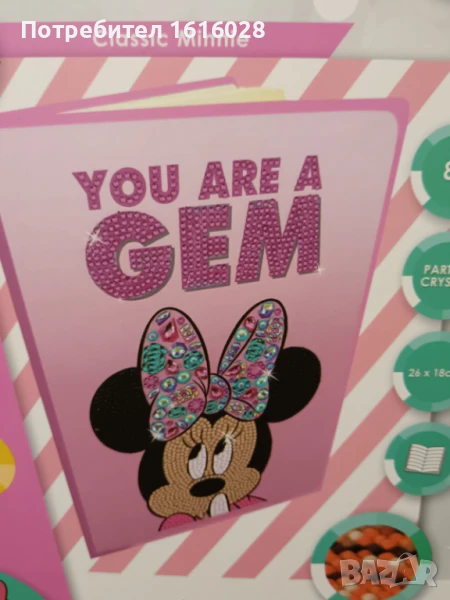 Комплект тефтер на Мини Маус с диамантени камъни на корицата. → Обява 50676430