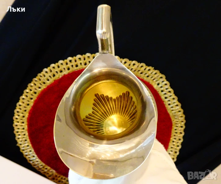 сребро,родирана за блясък и трайност.От вътре е позлатена.Каната има