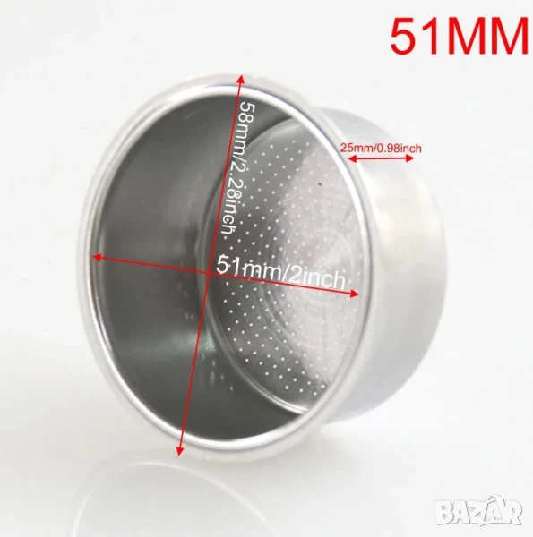 • Универсален размер: С диаметър 51 мм, тази филтърна кошница е съвместима с повечето еспресо машини и кафемашини, което я прави универсален избор за различни нужди при приготвяне на кафе.