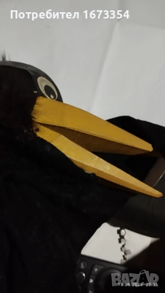 Гарван с дървена глава ,човката се движи ( отваря и затваря и се отварят крилете) Цена 70.00 лв