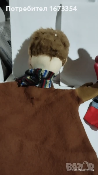 2) Кукла с кафяви дрехи и румени бузки и носле с дефект ( дупка на дрехата) Цена 20.00 лв
