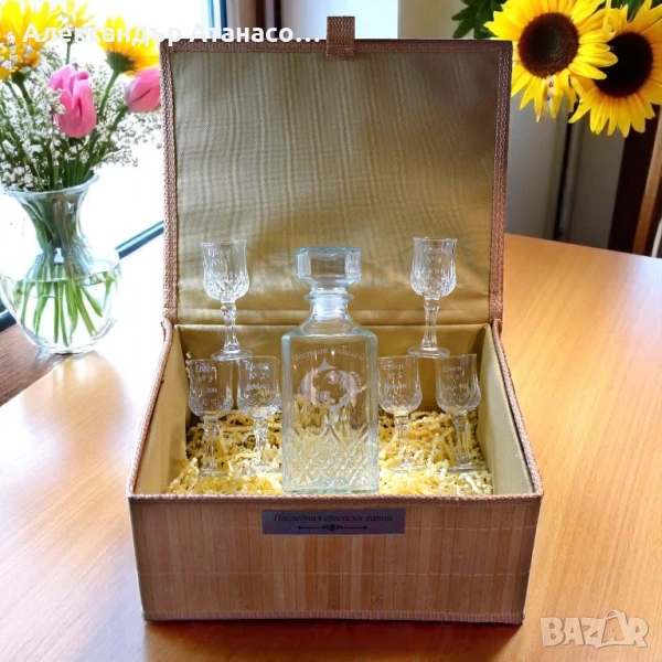 Гравиран сет от Гарафа,Шест чаши за ракия,Подаръчна бамбукова кутия
