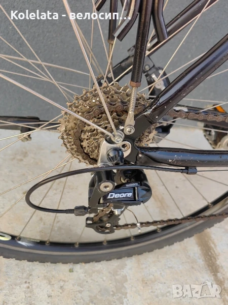 Deore с палцови команди- алуминиеви двойностенни капли с главини Shimano- курбели Truvativ- спирачки Avid- удобна седалка- калници, алуминиев багажник, степенкаВелосипедът може да види в гр.Сопот или гр.Пловдив, след предварителна уговорка. Само лично предаване.