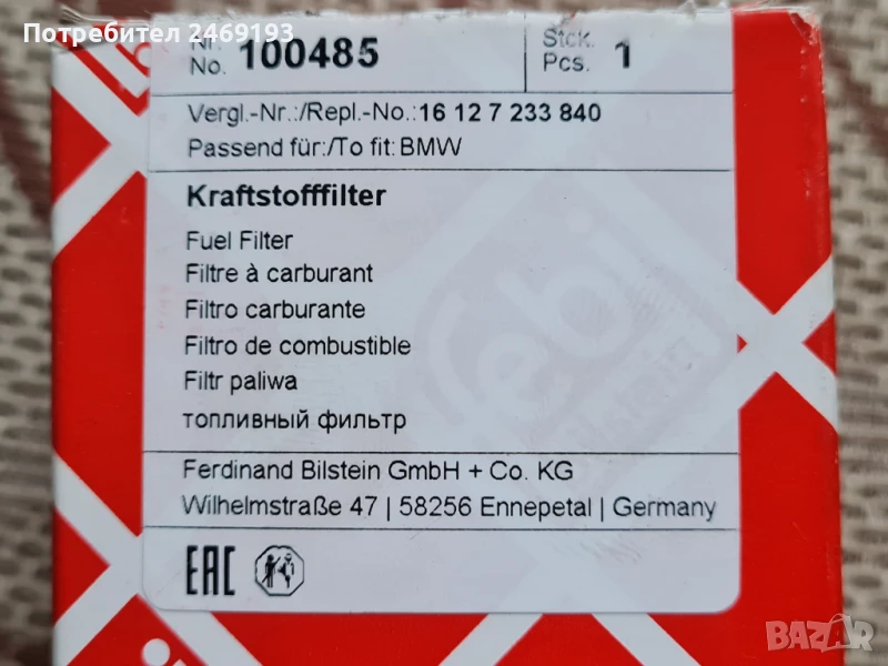 Горивен филтър за BMW е90 , снимка 1 - Части - 50677584 Горивен филтър за BMW е90 , снимка 2 - Части - 50677584 Горивен филтър за BMW е90 , снимка 3 - Части - 50677584 1/3