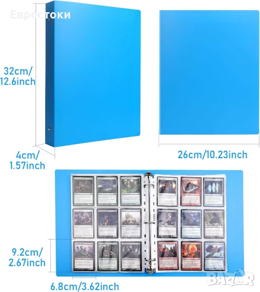 Албуми за колекционерски картички Lictin, 540 джоба, прозрачни калъфи за колекционерски картички, 30 страници, 18 джоба, празна папка за портфолио, водоустойчив, черен, син.