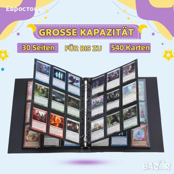 Албуми за колекционерски картички Lictin, 540 джоба, прозрачни калъфи за колекционерски картички, 30