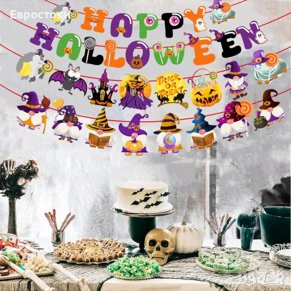 Декорации „Happy Halloween“, за Хелоуин с Тиква и Прилепи за декорация за Хелоуин, 3 броя банера