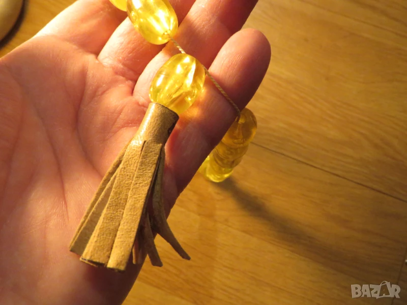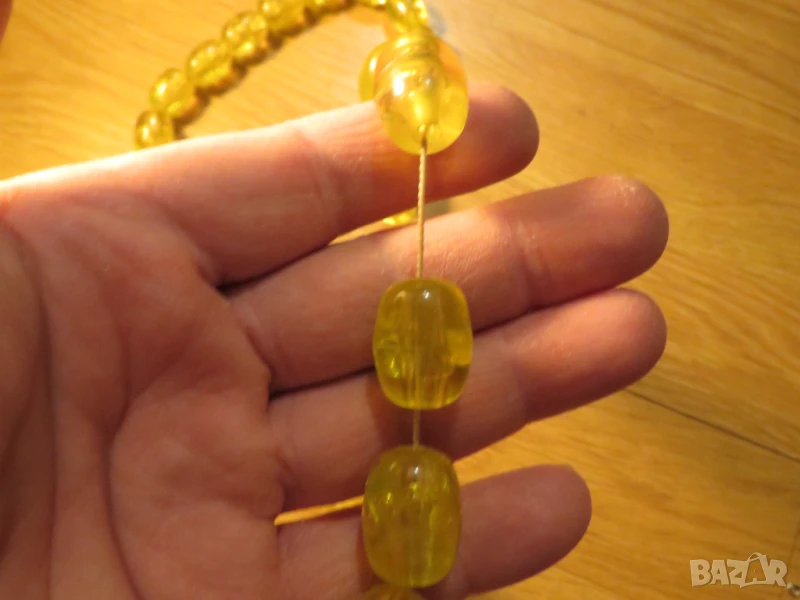 броеница с желти зърна, молитвена броеница с 33 мъниста с който мюсюлманите отброяват повтарящите се молитвени формули и имената на Аллах.