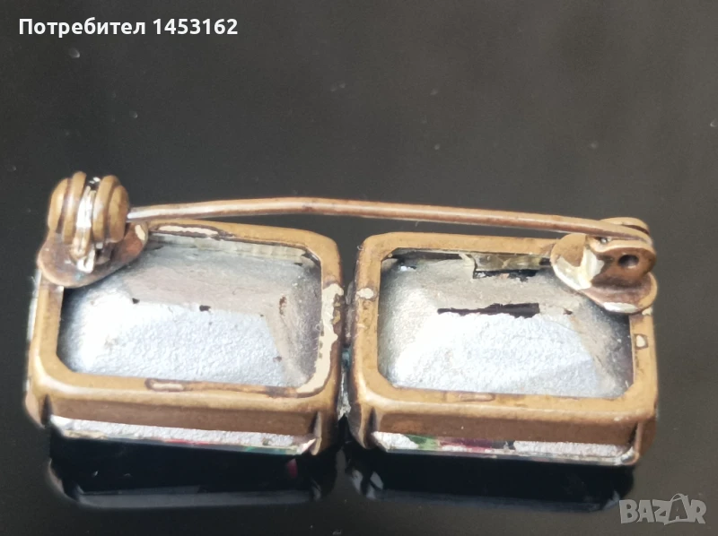Старинна брошка с ирисово стъкло → Обява 50678980