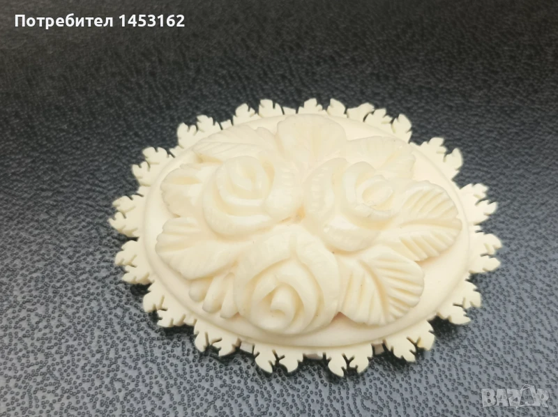 Невероятна старинна брошка от кост,ръчна изработка с изключително красиви детайли