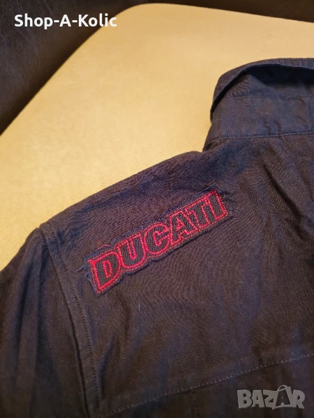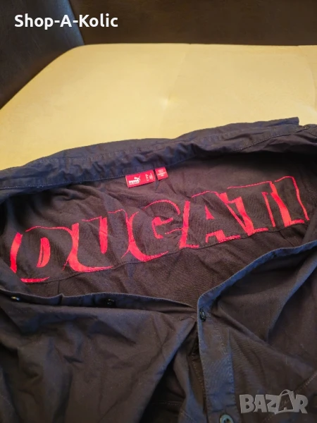 Оригинална риза с копчета и къси ръкави от Puma X Ducati Racing. Много стилна-подходяща за хора със спортно-елегантен стил на обличане! Само за ценители и почитатели на бранда, моторните спортове и високите скорости! Размер: L, 52/ 54 Made in India Моля, последвайте ни и в Instagram: Shop-A-Kolic
