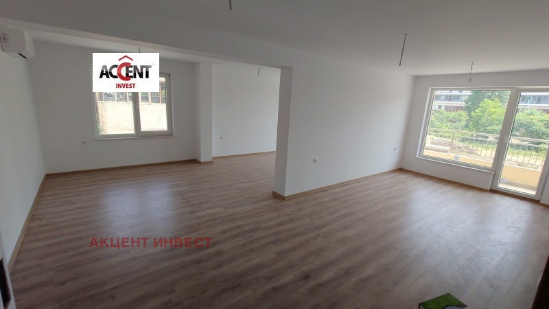 KOD 21433 'Акцент Инвест' Ви предлага офис помещение под наем след 'гранд Мол'. Имотът е с обща площ от 144 кв.м. и се намира на 1-ви етаж в нова сграда. Състои се от коридор, три работни помещения, баня с тоалетна, тераса пред трите стаи. Имотът се предлага без обзавеждане, посочената цена е без включен ДДС.