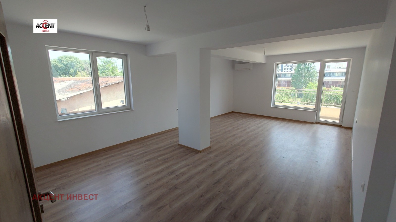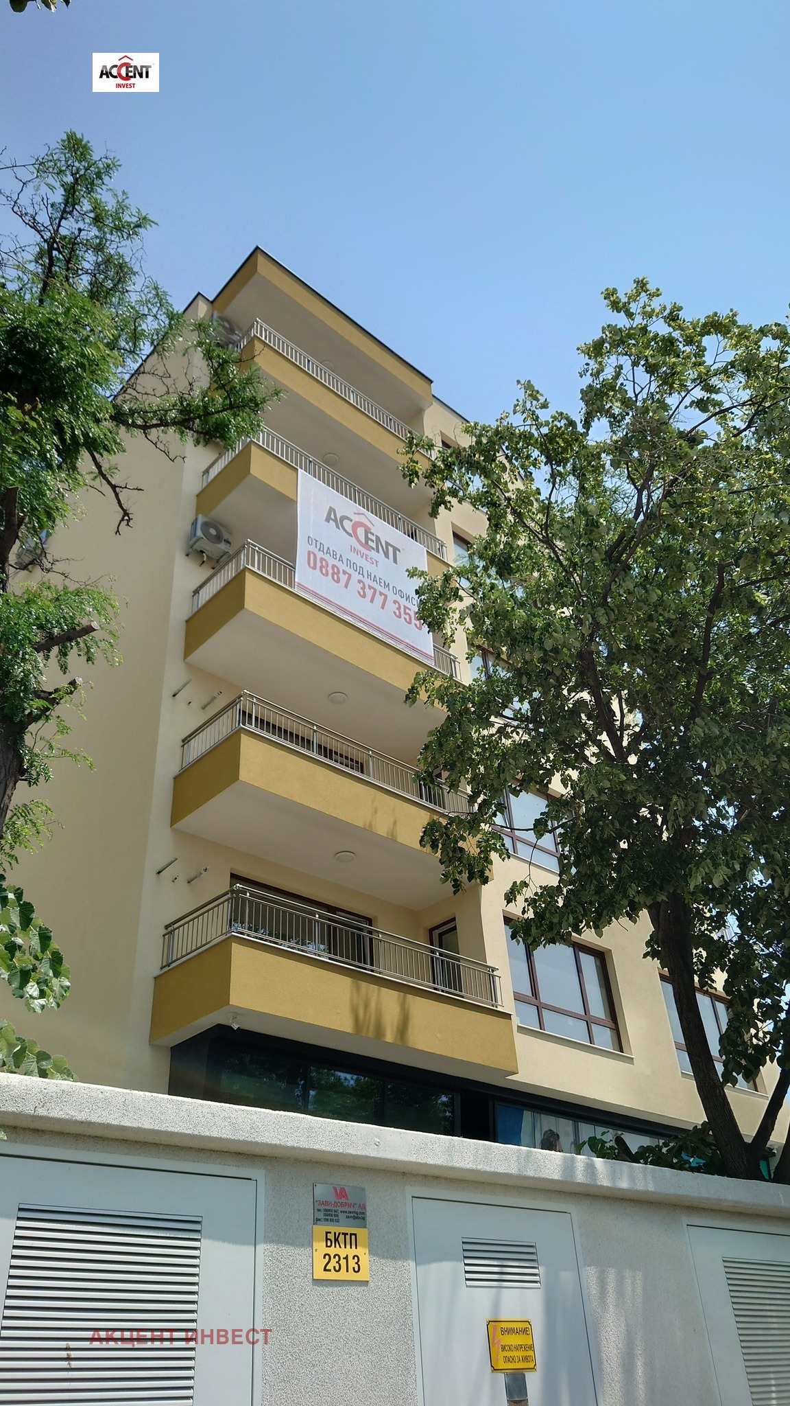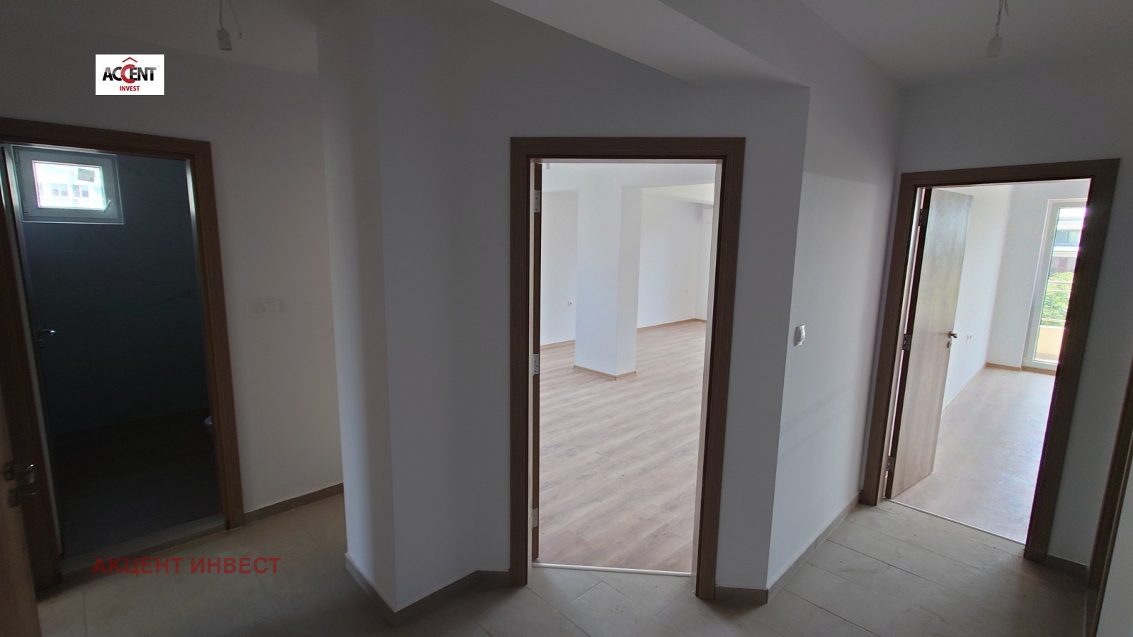 KOD 21437 'Акцент Инвест' Ви предлага офис помещение под наем след 'Гранд Мол'. Имотът е с обща площ от 128 кв.м. и се намира на 2-ри етаж в нова сграда. Състои се от коридор, три работни помещения, баня с тоалетна, тоалетна, малък склад, тераса пред трите стаи. Имотът се предлага без обзавеждане, посочената цена е без включен ДДС.