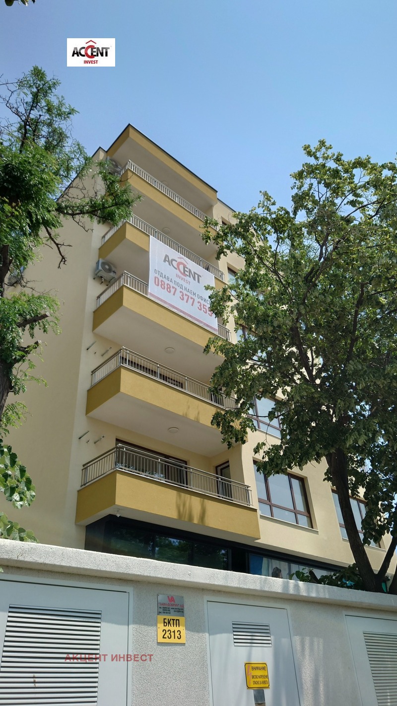 KOD 21439 'Акцент Инвест' Ви предлага офис помещение под наем след 'Гранд Мол'. Имотът е с обща площ от 119 кв.м. и се намира на 2-ри етаж в нова сграда. Състои се от коридор, три работни помещения, баня с тоалетна, тоалетна, малък склад, тераса пред трите стаи. Имотът се предлага без обзавеждане, посочената цена е без включен ДДС.