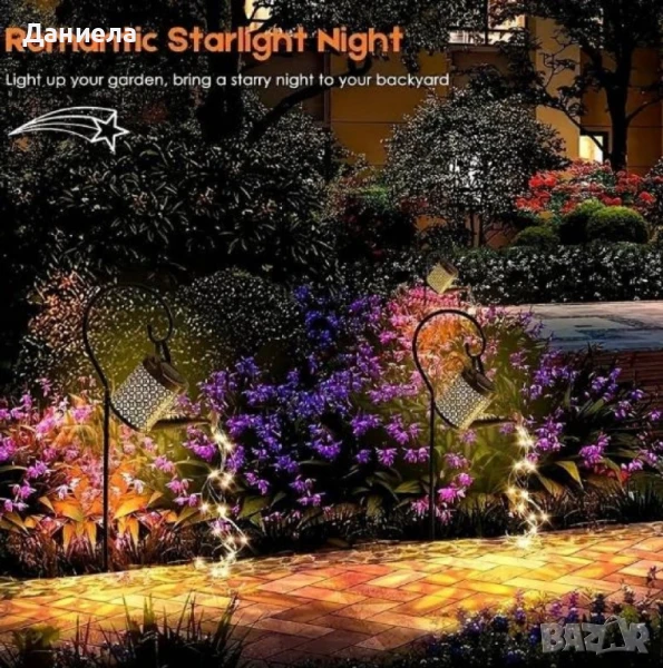Декоративна соларна лампа със светлинни спринклери – ефект „водопад“, 60 LED, топла бяла светлина