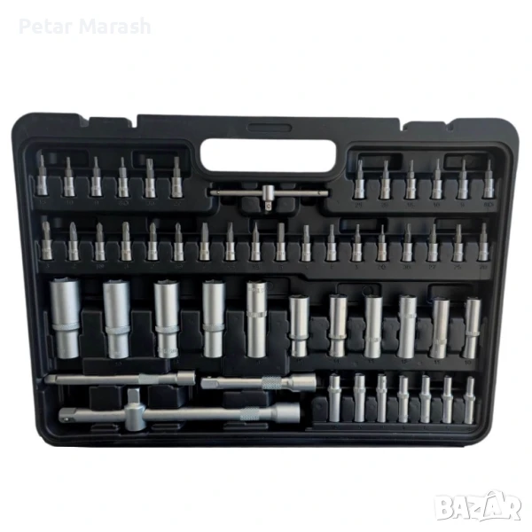 ✅ 1/2″: тресчотка, удължения 125 и 250 мм, кардан, вложки 10-32 мм, дълбоки вложки 16-22 мм, вложки Е-тип Е20-Е24