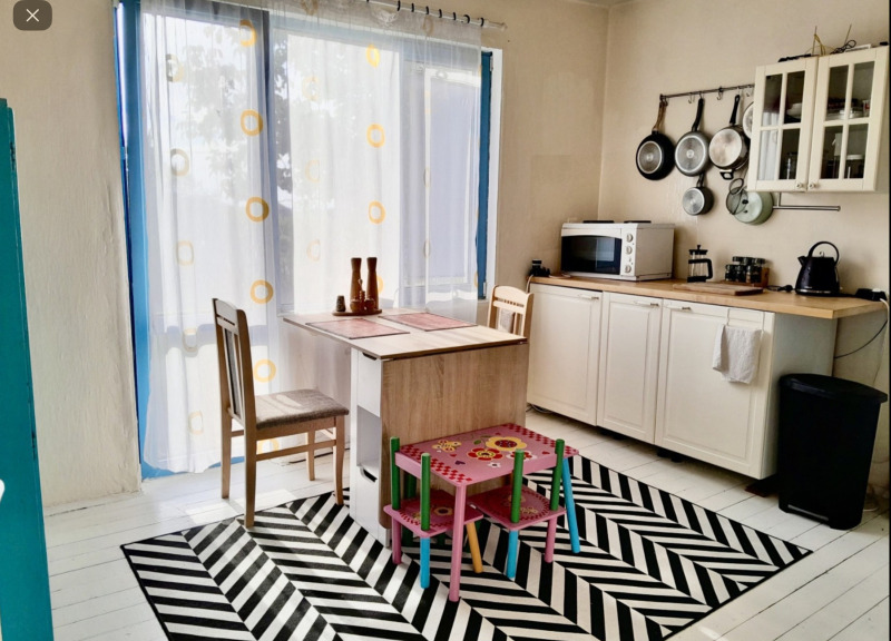 Първи етаж: две просторни спални (по 22 кв.м), баня с тоалетна и кухня.