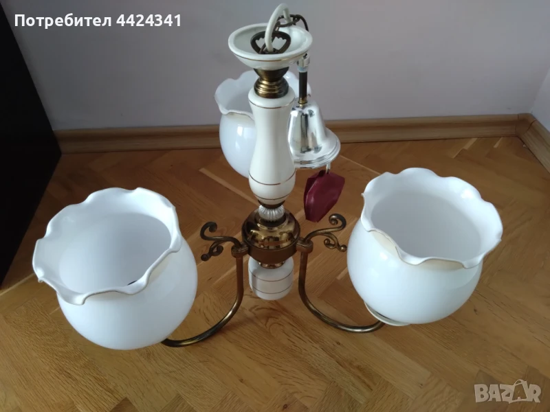 Единият полилей има фабрична пукнатина на порцелановия детайл под едната чашка.