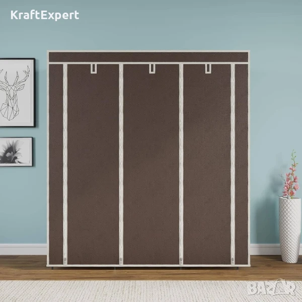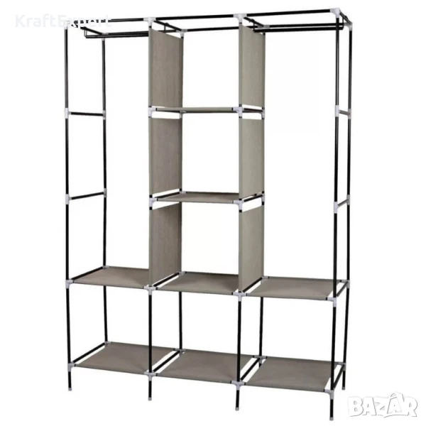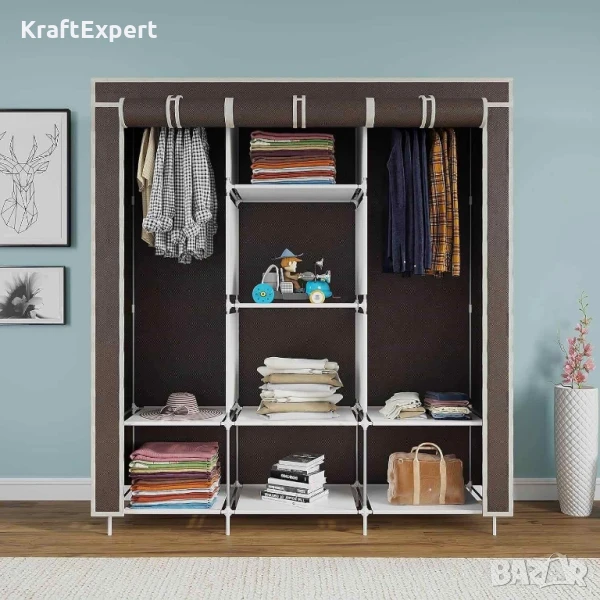 текстилен гардероб – размери 130x175x45 см✅ 8 удобни рафта + централен лост за дрехи✅ Метална конструкция с пластмасови съединения и текстилно покритие✅ Сгъваем, лек и лесен за монтаж – идеален за малки помещения👚 Текстилен Гардероб – Вашият спестяващ място стилен помощник!Имате нужда от допълнително място за дрехи, обувки, аксесоари – но в ограничено жилищно пространство? Представяме ви многофункционалния сгъваем гардероб от текстил, идеален за балкони, детски стаи, гардероби, хотели или офиси. Това е компактно, практично и елегантно решение, което подрежда и защитава вашите вещи, без да заема излишно място.✨ Привлекателни характеристики — лесен монтаж и употреба✔️ Сгъваем и лесен за монтаж – интуитивна конструкция, която се събира за минути, без необходимост от инструменти.✔️ Лек и удобен – само 3 кг, идеален за преместване и пренареждане.✔️ Защитен от прах и влага – покритието от нетъкан текстил запазва дрехите чисти и свежи.✔️ Множество възможности за подредба – 8 рафта за сгъваеми дрехи и аксесоари плюс широк лост за рокли, костюми и по-дълги облекла.🎨 Избери стил, който подхожда на твоя дом! Гардеробът се предлага в пет елегантни цвята – кафяво, бежово, розово, сиво и черно, за да се впише хармонично във всяко помещение. Независимо дали предпочиташ неутрална визия или акцент в интериора, имаш възможност да съчетаеш функционалност с индивидуален стил.⚙️ Технически данни:📏 Размери: 130 × 175 × 45 см – идеални за малки пространства🛠 Основни материали: здрава метална конструкция, пластмасови елементи и устойчив нетъкан текстил🧺 Брой рафтове: 8 + централен лост за висящи дрехи⚖️ Максимална товаримост: до 100 кг🌈 Налични цветове: кафяв, сив, розово, тъмносиньо🌿 Защо ще го обикнете:Оптимизиран дизайн – с минимална широчина 45 см идеален за тесни коридори, балкони и гардеробни ъгли.Многостепенно съхранение – рафтове и лост изграждат функционална и организираща система, без нужда от допълнителни мебели.Бързо сглобяване за 15–20 минути – можете да го използвате веднага след поръчка .Лесна поддръжка – мръсните повърхности се почистват с леко влажна кърпа, без излишни грижи.🛒 Финални акценти:Ако търсите практично, стилно и бюджетно решение за организиране на дом, офис или обществено пространство – текстилният гардероб е вашият отговор.С грижа за пространството и вещите ви, без компромиси в качеството и функционалността.Поръчайте сега и преобразете всеки ъгъл – чисто, подредено и стилно!
