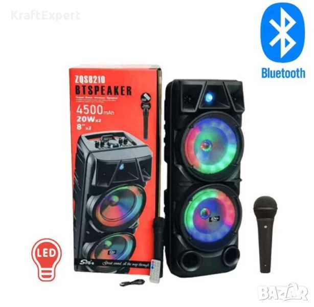 Информация за продукта• Иновативен дизайн за подобряване на аудио акустиката• Мощен и динамичен звук за максимална наслада при слушане• Качествен говорител и вграден усилвател за постигане на висока прецизност при аудиовъзпроизвеждане• Елегантен външен вид за вписване на работното място и в ежедневието Ви• Вградена акумулаторна батерия за пълна мобилност• Безжично възпроизвеждане на музика за всички устройства с Bluetooth• Дистанционна функция за управление на възпроизвежданата музика• Съвместима с всички смартфони , таблети и други Bluetooth устройстваТехнически характеристикиАудио вход : USB ( USB флаш памет ) /AUX / BluetoothГоворители (основен):2х8“Мощност RMS: 40WMощност MAX : 60WЧестотна лента : 45Hz-18KHzСигнал/Шум SNR : 50dBАкумулатор : 5VВреме на работа :до 6 часаВреме за зареждане :~ 2 часаВходно напрежение : 5 VМикрофонен вход:Да - 1 x 6.35ммБезжичен микрофон: Да - 1 бройСветлинни ефекти: Да