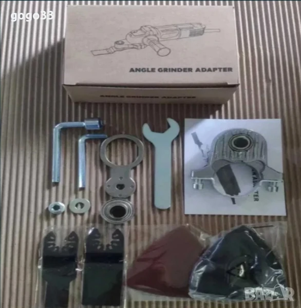 ъглошлайф;Адаптерът за ъглошлайф е практичен комплект, който позволява преобразуването на стандартен ъглошлайф в многофункционален инструмент. С този комплект могат да се извършват дейности като рязане, шлайфане, шкурене и дори работа с дърво и метал. Комплектът е предназначен за хоби и полупрофесионална употреба, като спестява време и разходи за отделни инструменти. 1 x основен адаптерен модул;– 1 x универсален гаечен ключ;– 1 x водеща планка;– 2 x монтажни L-образни ключа;– 2 x многофункционални остриета;– 1 x диск-адаптер;– 1 x шайби и гайки;– 1 x подложка за шкурка;– 1 x комплект шкурки.