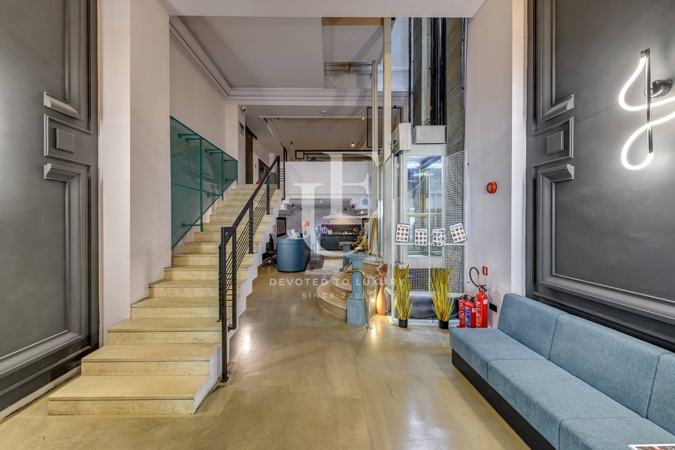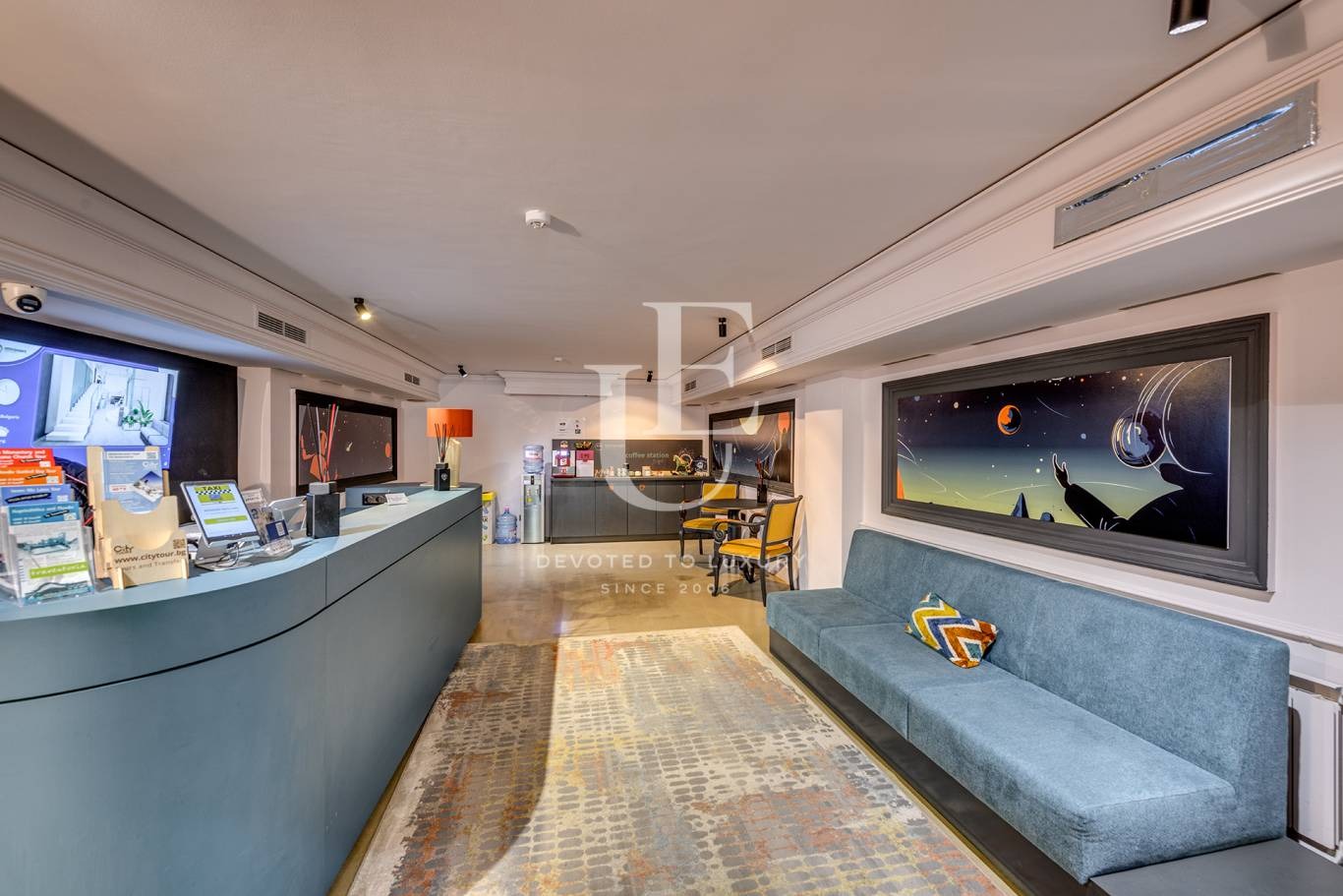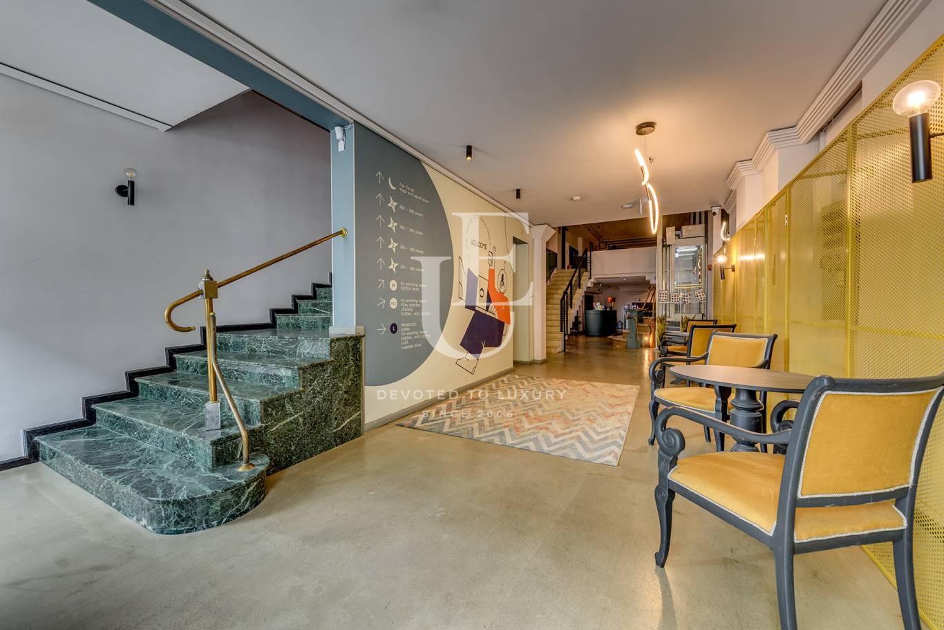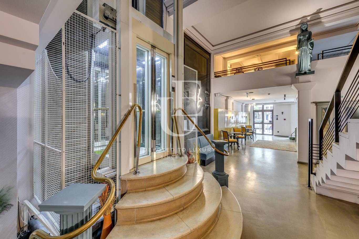 Тази емблематична сграда впечатлява с елегантна симбиоза между класическа архитектура и съвременен дизайн. Интериорът е завършен с изискан вкус модерни дизайнерски решения и качество на материалите.