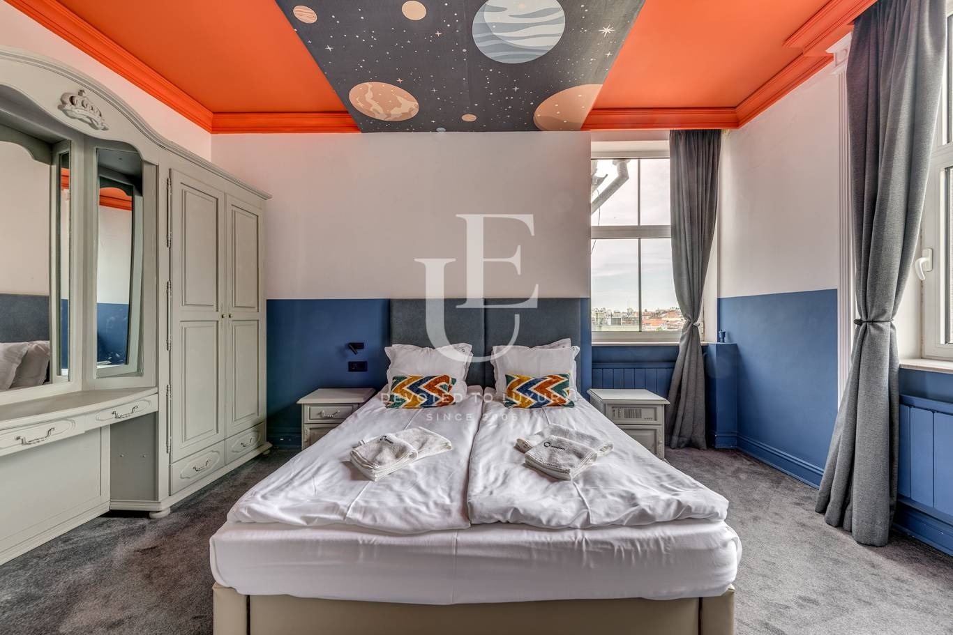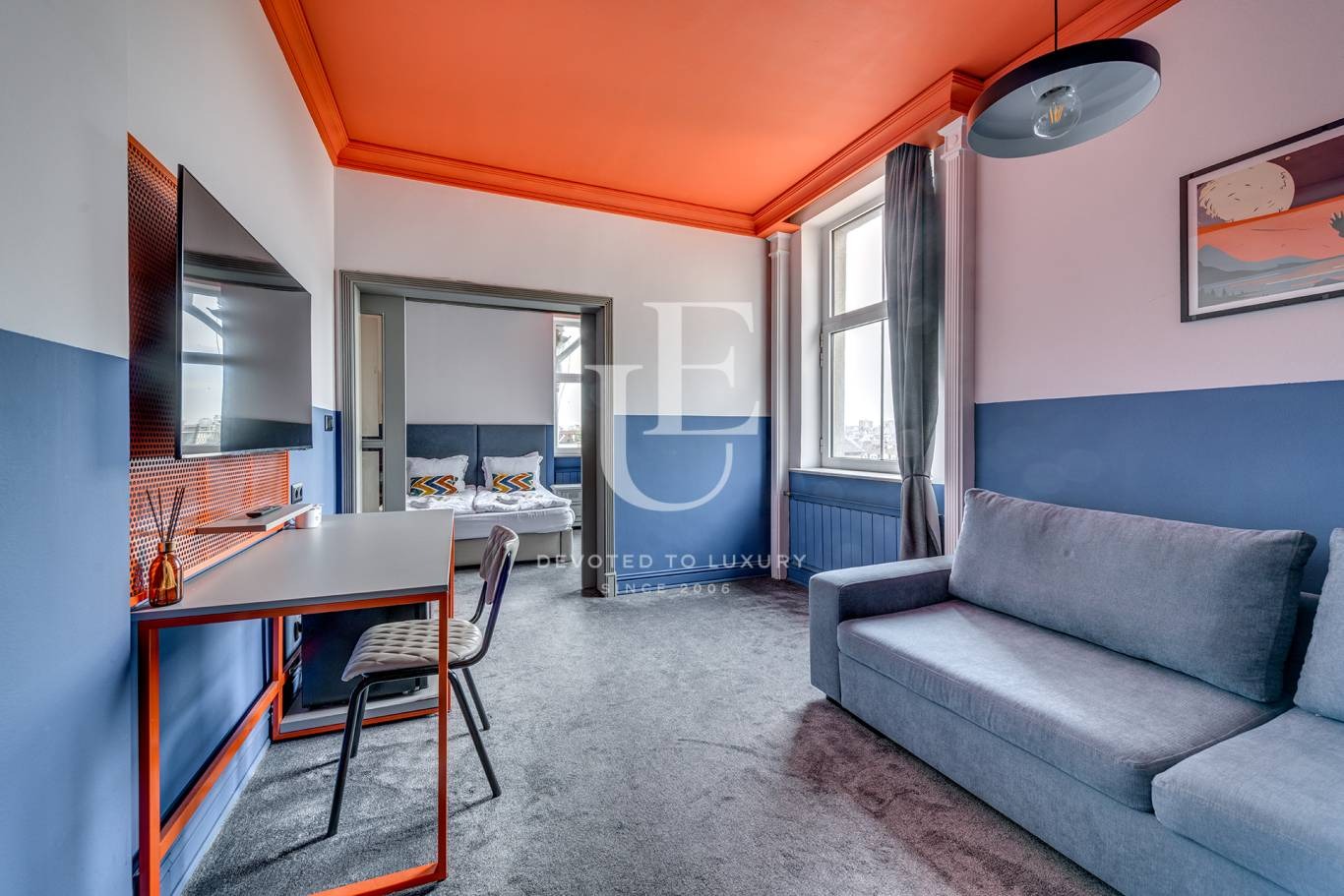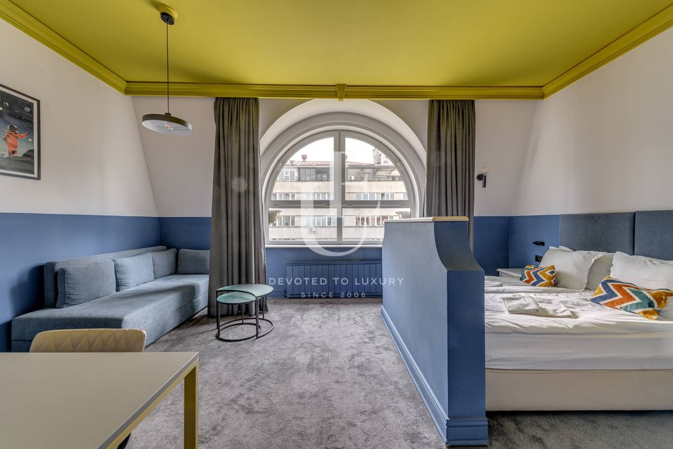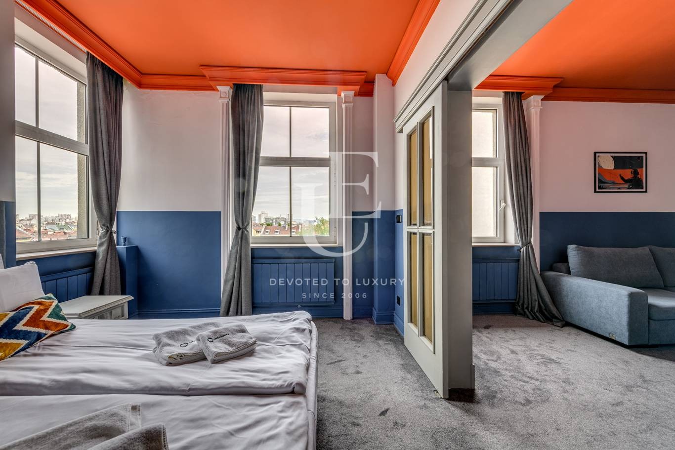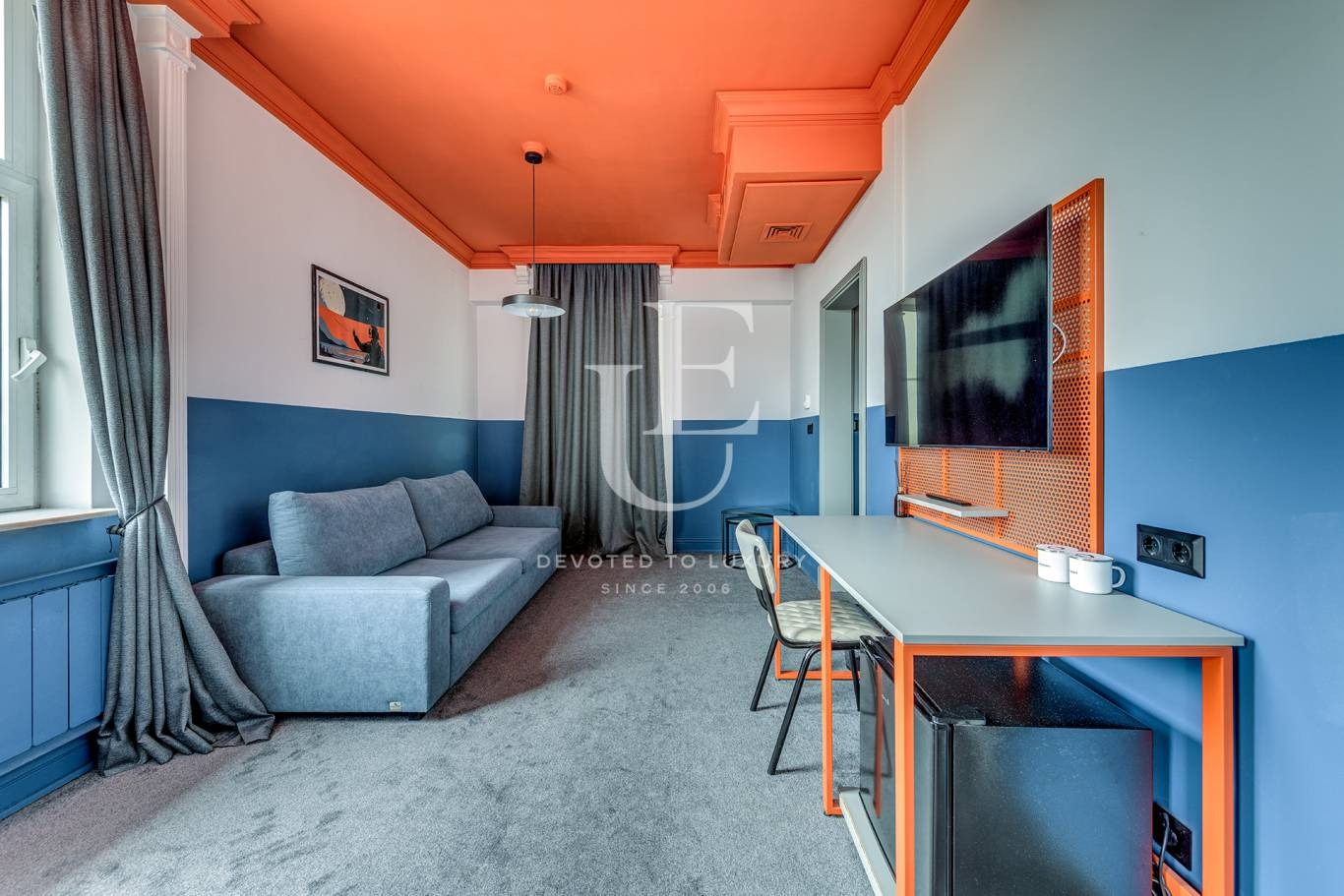 Тази емблематична сграда впечатлява с елегантна симбиоза между класическа архитектура и съвременен дизайн. Интериорът е завършен с изискан вкус модерни дизайнерски решения и качество на материалите.