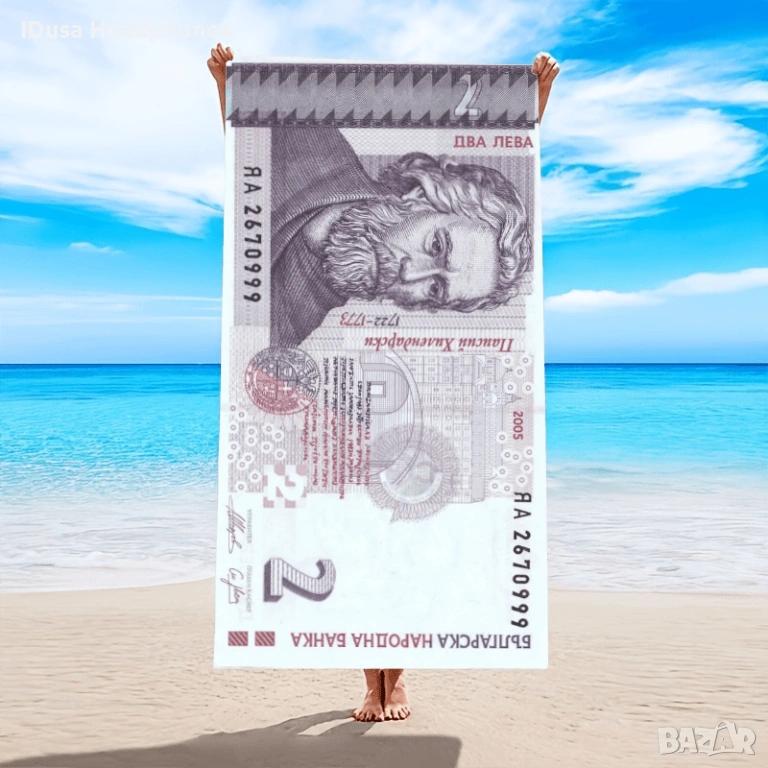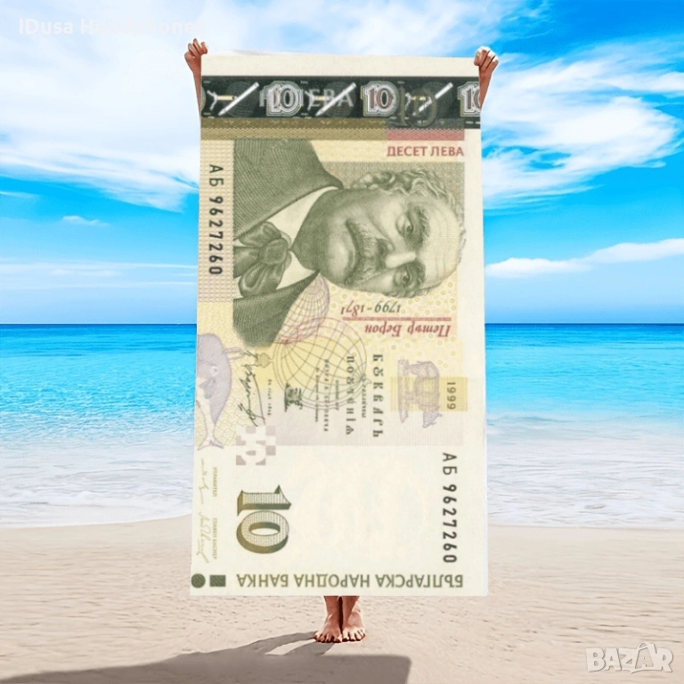 Уникална плажна кърпа с дизайн на българска банкнота – съчетава хумор, носталгия и комфорт. Перфектният аксесоар за морето, басейна или подарък с български характер.