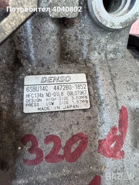 Компресор за климатик БМВ Е90,Х1 и много други модели на марката.Оригинален номер 447260-1852 Пращам с Еконт в цялата страна