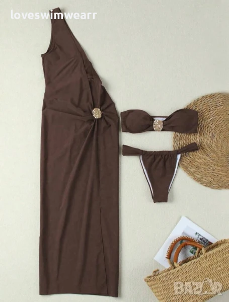 Бански с рокля, налична в три цвята. Горнище с подплънки.