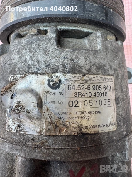 Компресор за климатик БМВ Х3 Е83 (става и за много други модели на марката) Оригинален номер 64526905643 Пращам с Еконт в цялата страна