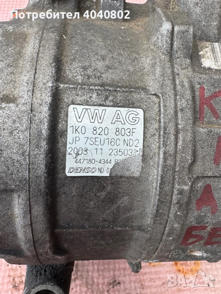 Компресор за климатик Фолксваген Кади/Голф5 и много други модели на марката. Оригинален номер 1K0820803F Пращам с Еконт в цялата страна