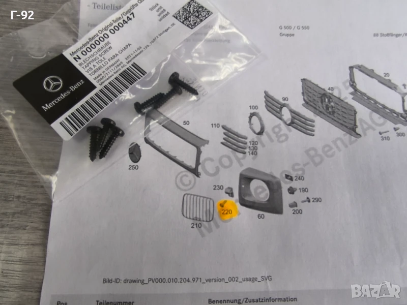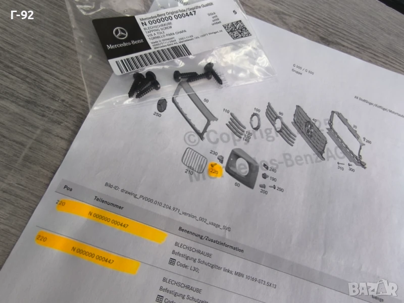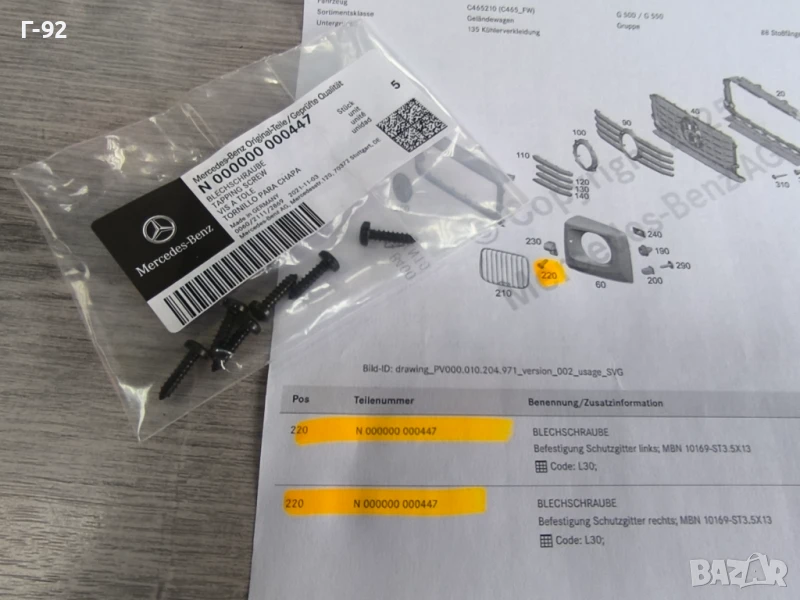 N000000000447**NEU**MERCEDES-BENZ**БОЛТ ЗА ДЪРЖАЧИТЕ НА РЕШЕТКИТЕ ПРЕД ФАРОВЕТЕ**