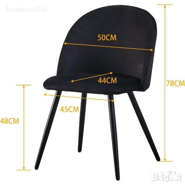 45 x 44 x 78 см; височина на седалката: 48 см.
