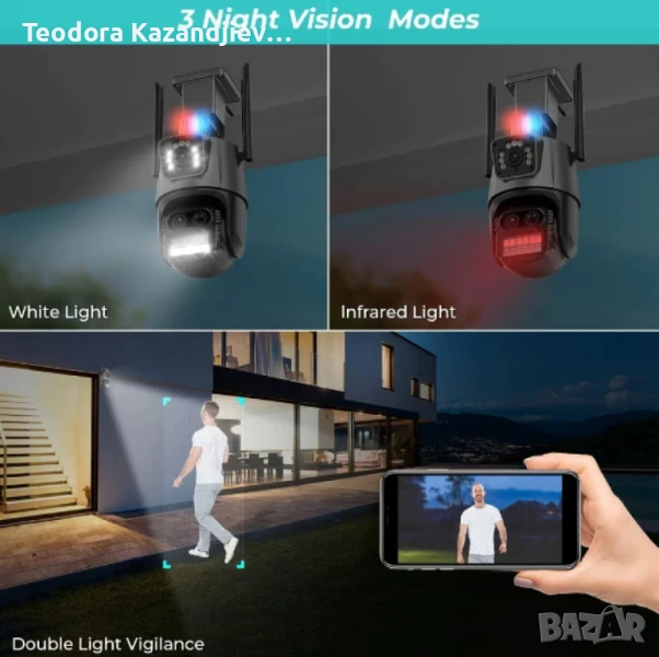 Камера за наблюдение 4K Ultra HD,8MP,датчик за движение,нощно виждане,двупосочна аудио връзка,водоустойчива+ 12 пъти zoom !Цветно нощно виждане: Да;