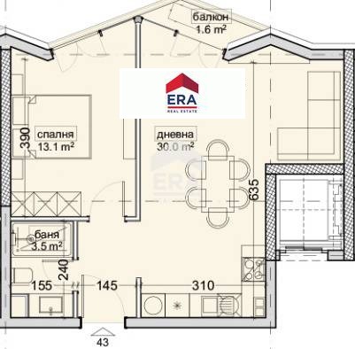 ЕРА Лайф обявява за продажба двустаен апартамент тип студио с площ 65.48 кв.м. /застроена площ 56.20 кв.м./ в строеж на жилищна сграда във варненския квартал 'Владислав Варненчик', в близост до бул. Цар Освободител. Имотът е разположен на пети /панорамен/ етаж в десет етажна сграда, състояща се от два входа. Разпределението на имота: входно преддверие - 3.50 кв.м., дневна с обособена кухненска част - 30 кв.м. спалня - 13,10 кв.м., тераса - 1,6 кв.м. и баня с тоалетна - 3,5 кв.м. Виж раздел: снимки, секция План.