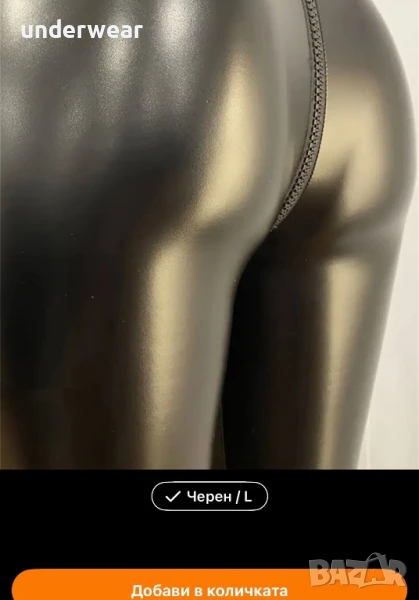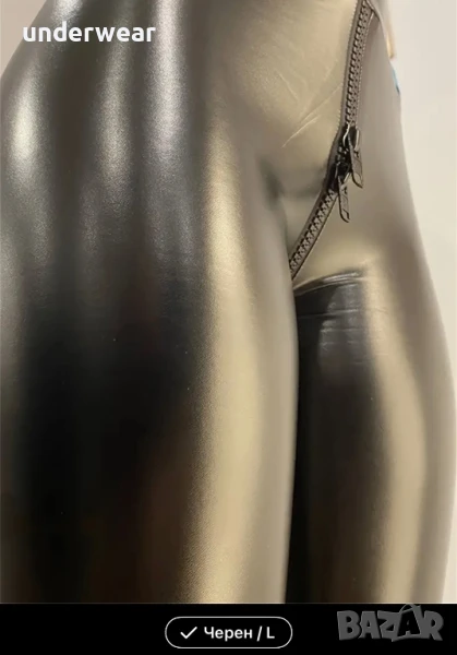 Черен кожен панталон с цип - отворено дъно. Размер Л. Еластичен