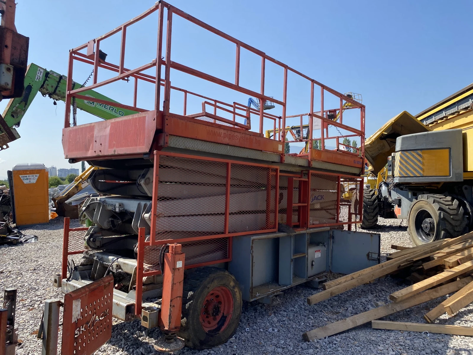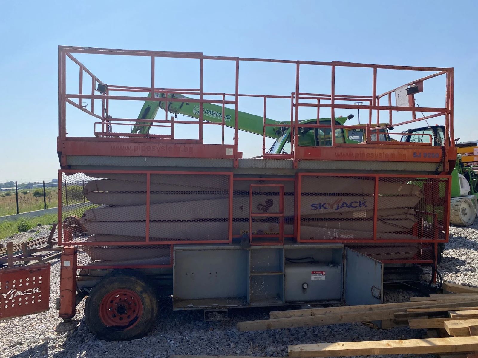 вишка SkyJack SJ9250 RT (2004) за части Кат. ном. BTX15137 Марка: SkyJack Модел: SJ9250 RT Година на производство: 2004 Тип: Ножична вишка за пресечени терени Състояние: За части Основна информация Работно тегло: 7250 kg Товароносимост (платформа): 680 kg Работна височина: 17070 mm Височина на повдигане (платформа): 15240 mm Височина на разтоварване: 15240 mm (идентична с височината на повдигане) Дължина на платформата: 4270 mm Ширина на платформата: 1880 mm Общо разширение на платформата: 7200 mm Транспортна дължина: 4470 mm Транспортна ширина: 2340 mm Транспортна височина (с перила): 3170 mm Пропускателност (наклон): до 30 % Задвижване: 4x4 Брой удължения на платформата: 2 × 1520 mm Скорост при движение (събрана): 3. 8 km/h Скорост при движение (вдигната): 0. 72 km/h Време за повдигане: 64 s Време за спускане: 72 s Двигател и задвижване Тип двигател: Дизелов Марка двигател: Kubota Система за задвижване: Хидростатична, постоянен 4x4 Спирачна система: Дискови спирачки Окачване: Стандартно, с хидравлични стабилизатори Управление: Четири управляеми колела Оборудване и особености RDS Alpha 50 Weigher Amber и Green Beacons Fire Extinguisher (пожарогасител) Blue Reverse Lights Brigade Radar L3 гуми за груби терени Ръчно управление от платформата и шасито Механично отключване на стабилизаторите Контакт на платформата 110V с GFI защита Предупредителни аларми за наклон и движение Перила със защити и монтажни отвори Генератор 3. 5 kW (по избор)